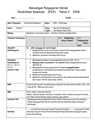 Rph Pendidikan Kesenian Tahun 2 Docx Rancangan Otosection